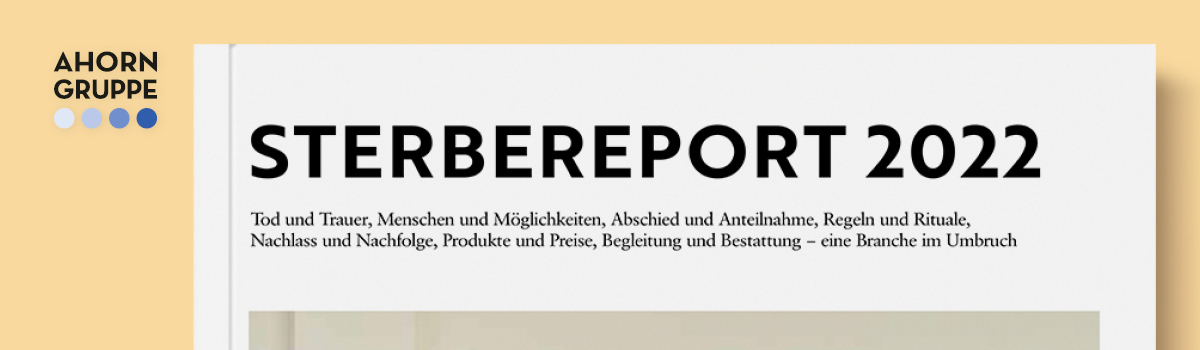 Dazu lässt der Sterbereport auch die Bürgerinnen und Bürger in Deutschland zu Wort kommen. In einer exklusiven Untersuchung hat forsa für den Marktführer Ahorn Gruppe recherchiert, wie sich die Deutschen mit dem Tod auseinandersetzen, ob sie vorsorgen oder verdrängen und was ihnen im Hinblick auf das eigene Lebensende wichtig ist. Die Umfrage gibt Aufschluss über bevorzugte Bestattungsarten, geplante Vorsorgeregelungen, über die wichtigsten Informationsquellen der Menschen und ihre wesentlichen Kriterien für die Auswahl eines Bestattungsinstituts.