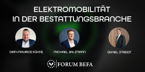 Alternativ angetriebene Fahrzeuge sind nicht nur in der Bestattungsbranche seit Jahren ein viel diskutiertes Thema– seien Sie Teil der Diskussionsrunde unserer Experten über die Veränderungen der Mobilität in der Bestattungsbranche.