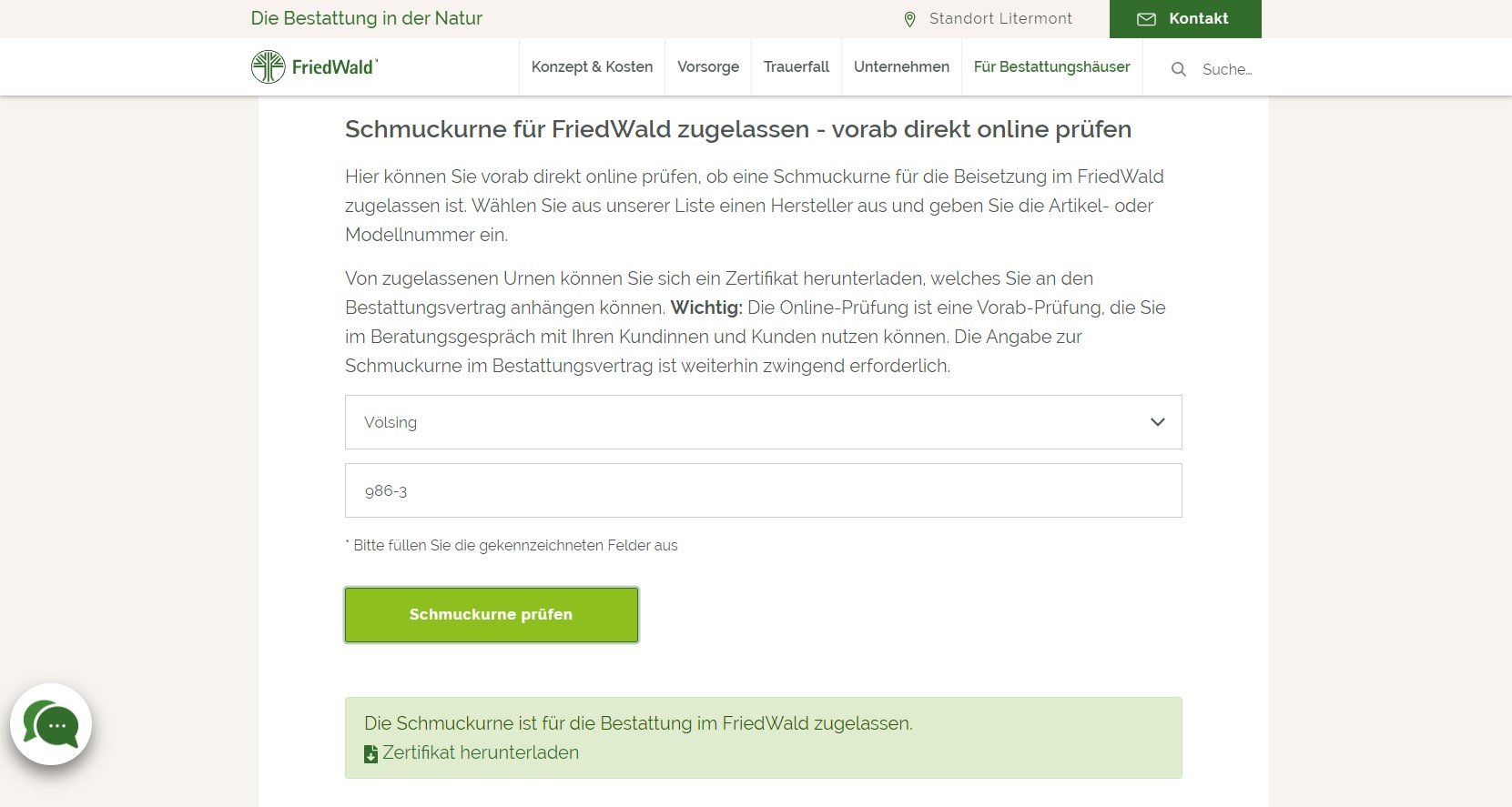 Ob eine Schmuckurne zugelassen ist, können Sie direkt online prüfen – schnell und unkompliziert.